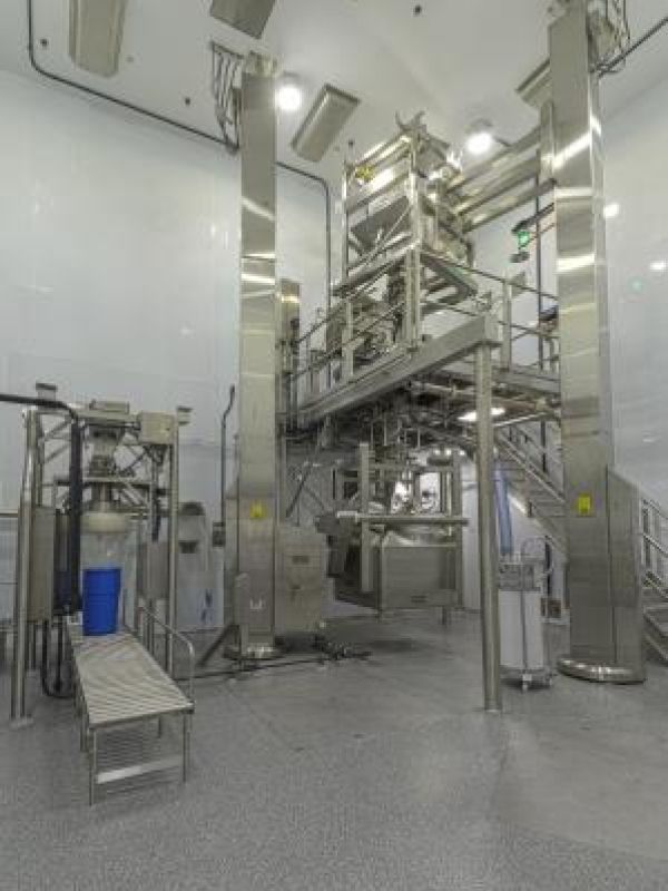 The manufacturing area was designed to accommodate two (2) new Finishing Suites, only one of which was constructed and built out as part of the project. Additional support spaces included a Wash Room and Weigh/Dispense/Re-Pack Area. The proposed Finishing Suite included installation of existing mill and sifter equipment for bulk API processing; however, a new stack-up was required in order to accommodate their reuse. Cyma Builders led the procurement effort to purchase the new stack-up complete with new IBC’s, post lift, static butterfly valves, blender, and pack out equipment surrounded by a multi-tier stainless steel mezzanine. Additional process equipment purchases were also coordinated to accommodate the program including roller conveyors and floor scales.