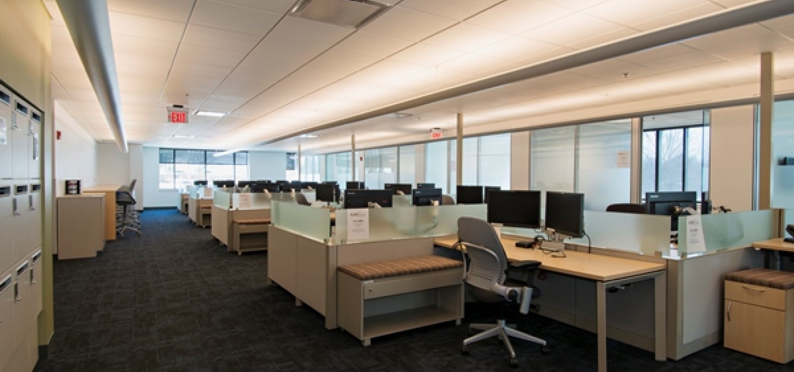This project is a continuation of company-wide office upgrades currently ongoing within this Fortune 500 Pharmaceutical company to provide a more flexible workplace. Project scope included architectural modifications to open up the floor plan, installation of glass-wall demountable partitions at office fronts and MEP upgrade to accommodate new furniture systems and changing floor plan. The work was performed strategically across two separate active buildings allowing for minimal impact to ongoing business operations. Cyma Builders handled management of all personnel moves and furniture installation as part of the construction process to ensure a seamless delivery. All construction activities were also coordinated with building-wide fire alarm upgrades to accomplish all work in parallel. The project schedule required the majority of work to be complete in November/December 2014, which was successfully achieved.